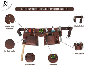 Store your tools in style with our premium Classic Tool Belt, crafted from high-quality Brown Leather. This belt features 10 pockets in varying sizes to hold your essential tools,along with a tool-holding pouch and 3 tool-holding loops in different sizes.